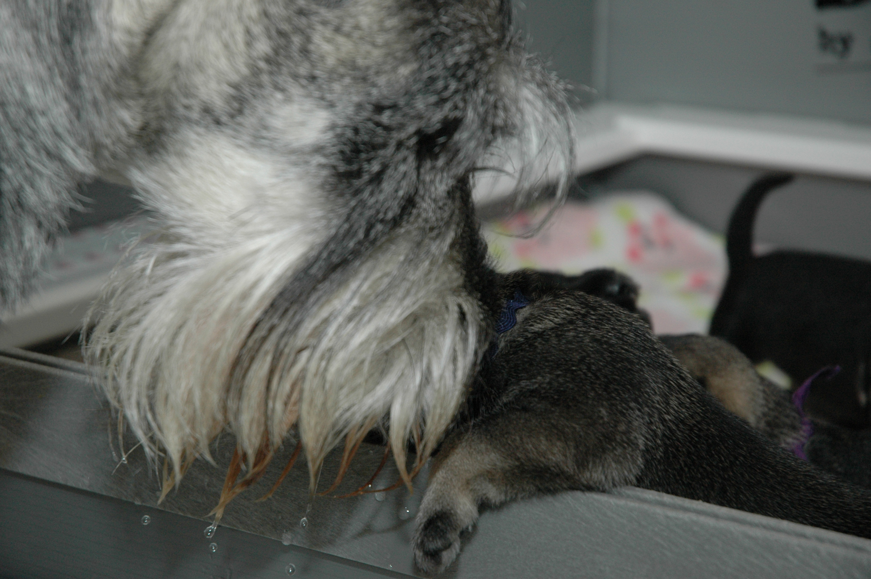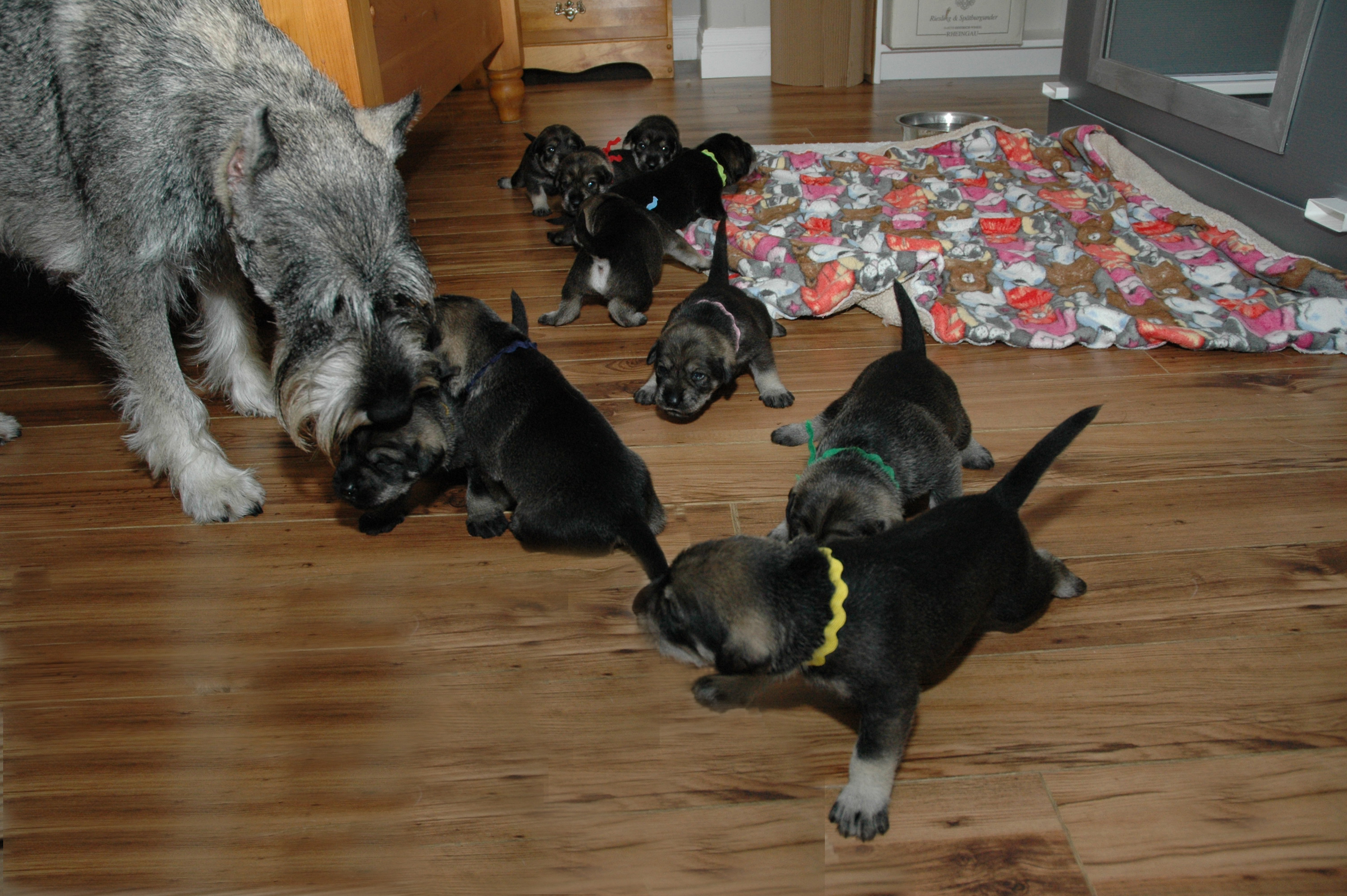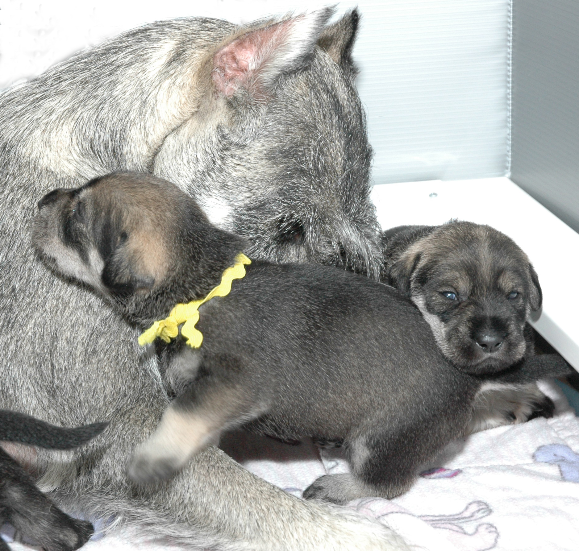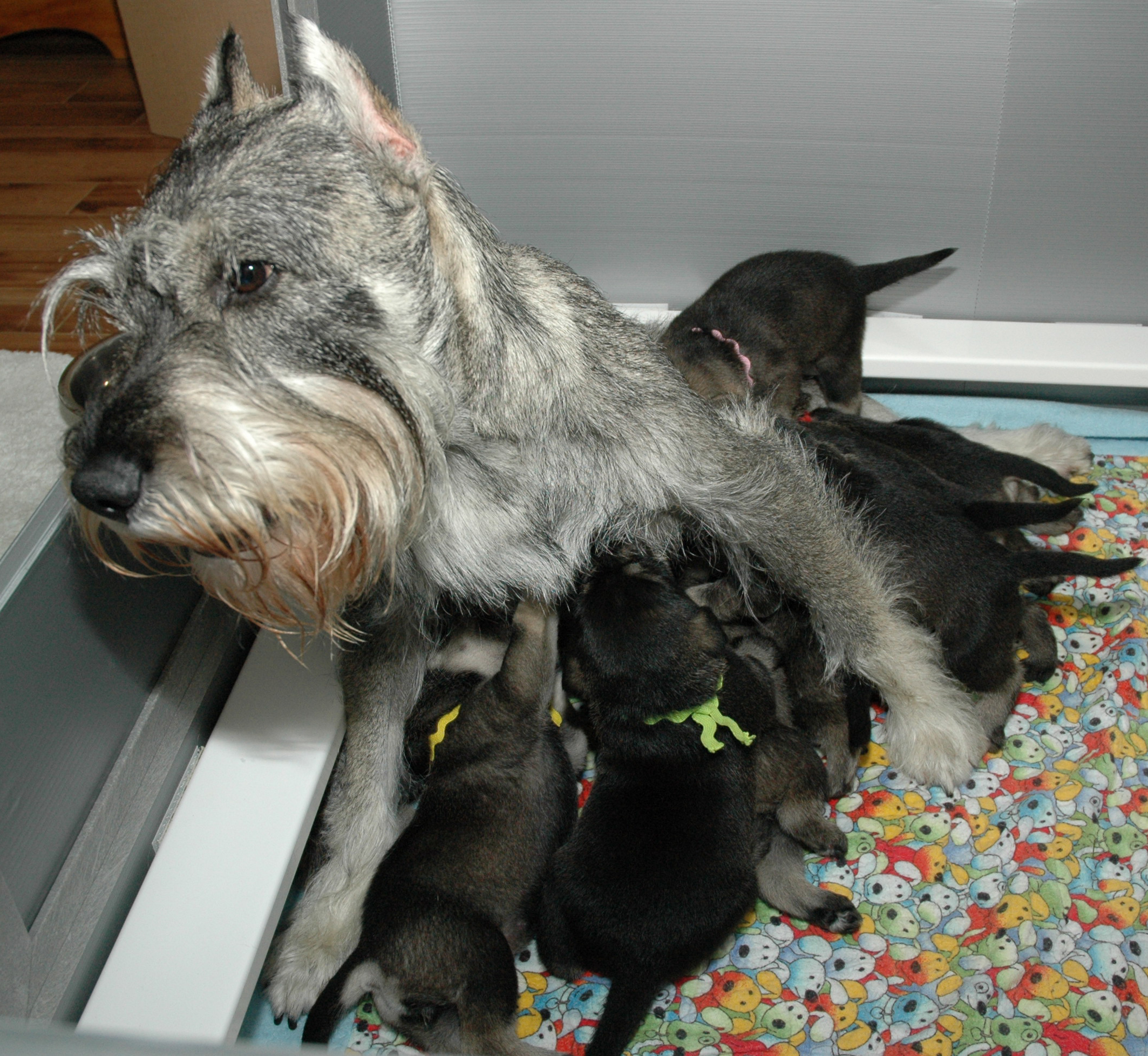 Ciara is still cleaning each and everyone of her pups. She will continue to do so as long as I do not interfere by feedint them myself. At that point I will get the ‘look’ saying, “you want to feed then, then you clean them”; then the games begin!