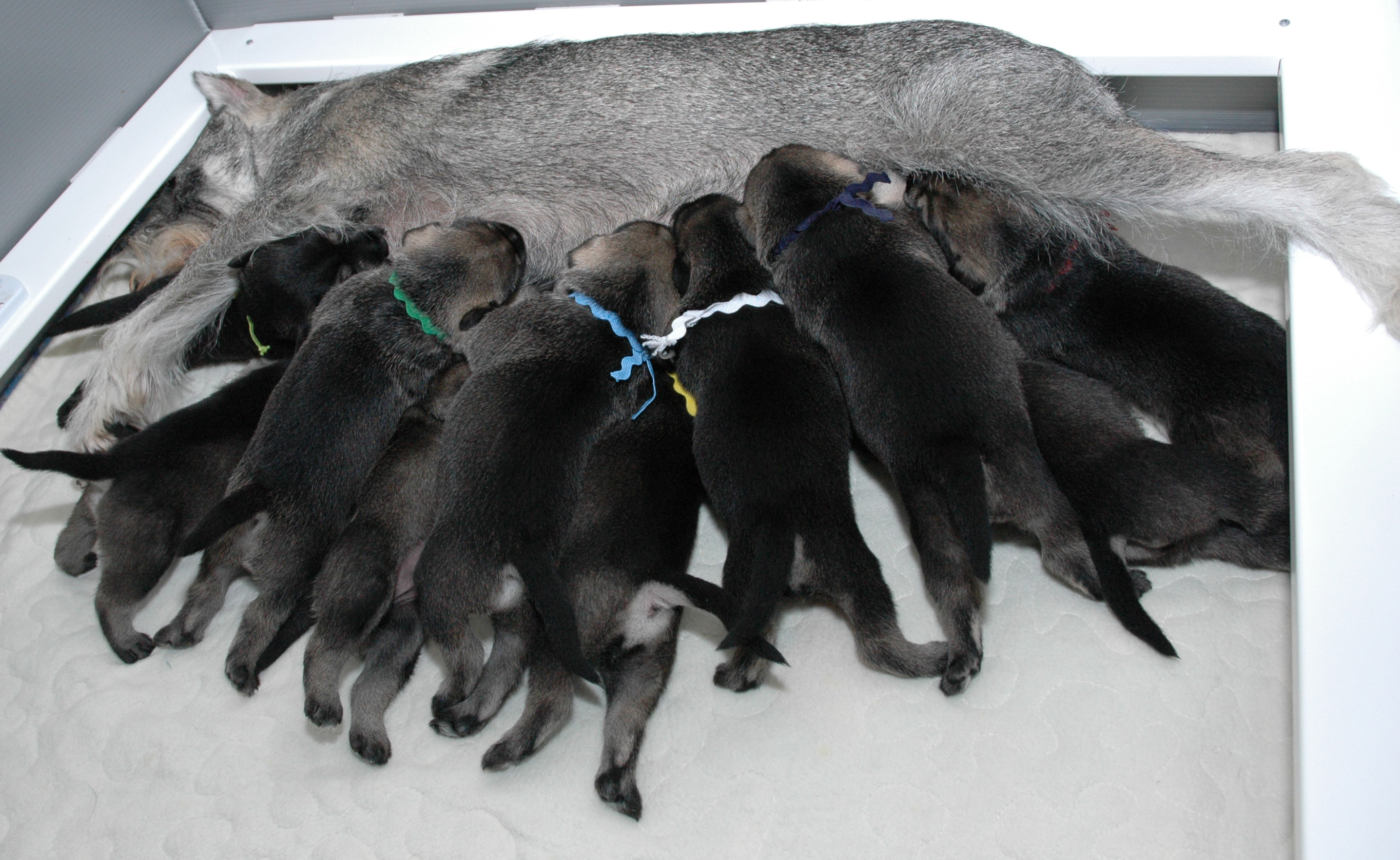Sometimes when Ciara gets in the whelping box after a little time out she litterally disapears under the assault of hungry mouthes !