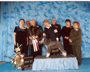 Breeze went on to win several group placements and was the top Standard Schnauzer in Canada in 2004, and 2nd in 2005, while giving birth to a litter of.. 16. Her picture with daughter Lia has remained a favourite and appears on the Standard Schnauzer Club of Canada’s website.
